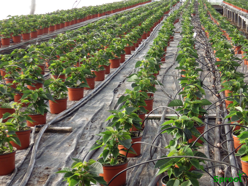 Our poinsettias have developed a nice shape, some of the blacked-out ones are starting to show some early colour.